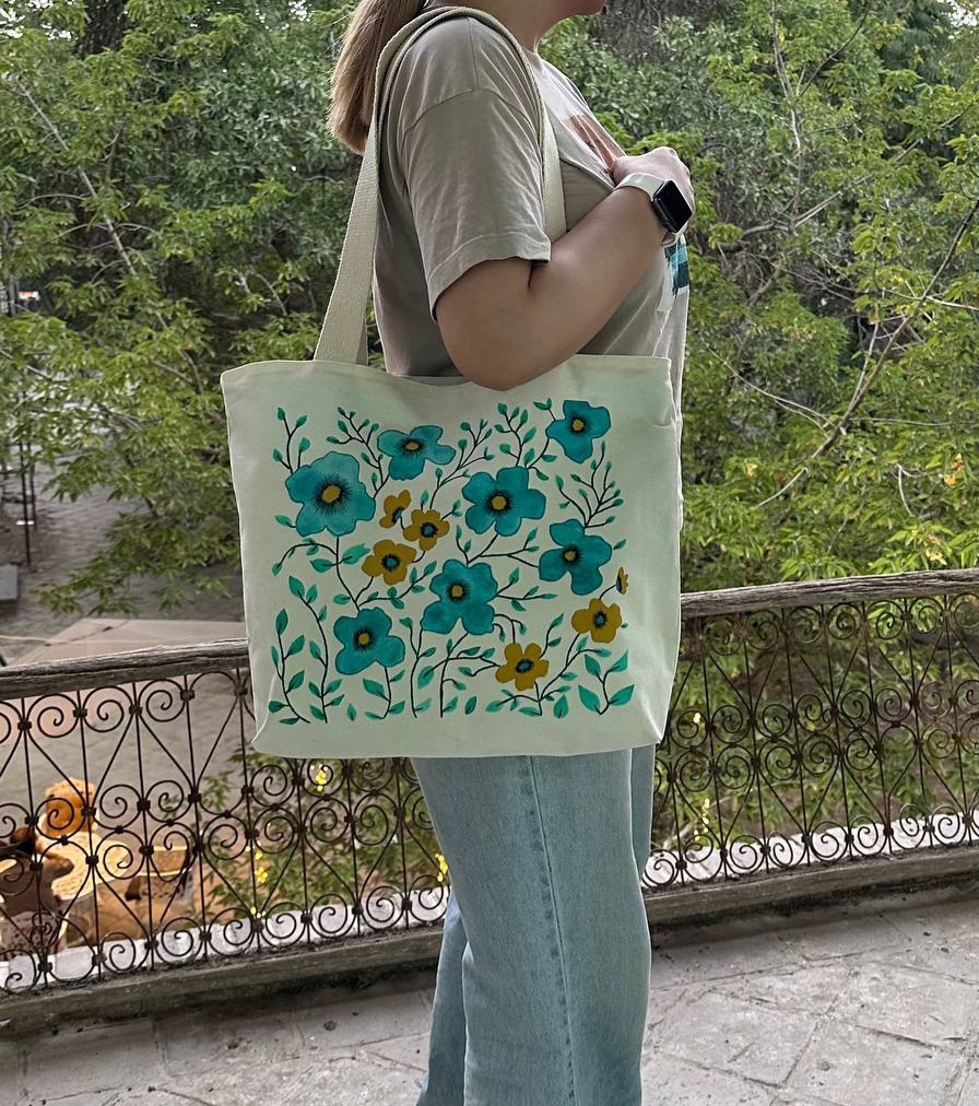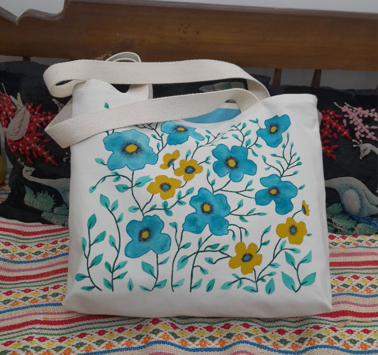 جنس کرباس ضخیم و محکم دارای کفیآستر نخی جیب داخلسایز : ۴۰ در ۴۴بند محکم ۷۵ سانتنقاشی با قلم مو و رنگ مخصوص پارچهقابل شستشو و رنگ ثابت