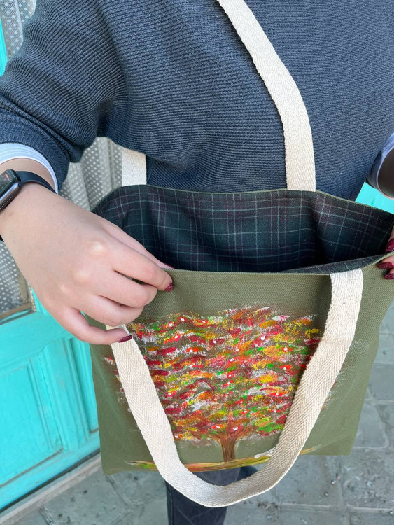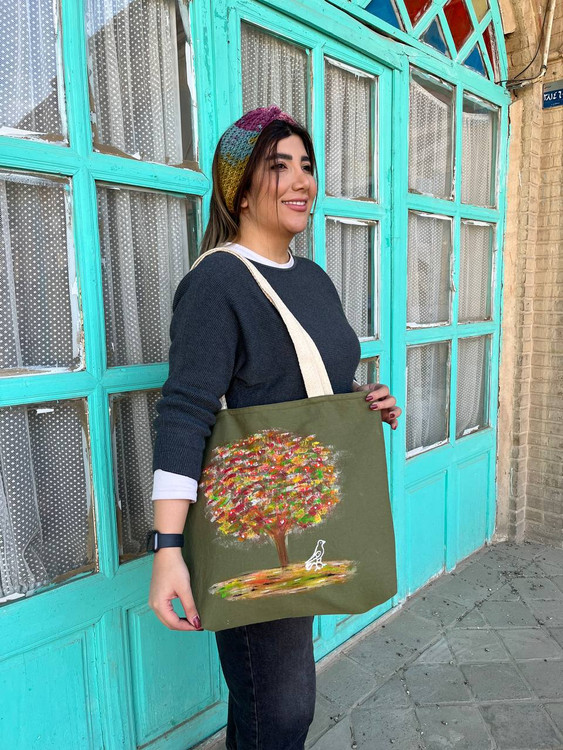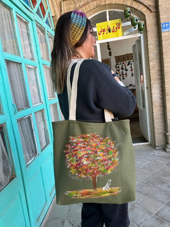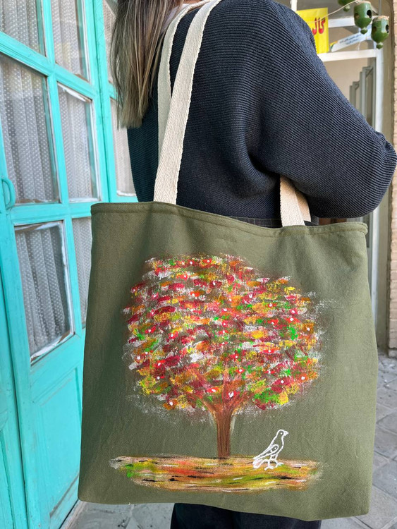 الیاف_طبیعی پنبه رنگ زیتونی: سایز ۴۵ در ۴۳ دارای کفی و آستر محکم